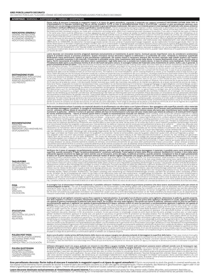Lastre decorate destinate esclusivamente al rivestimento di pareti interne./Decorated panels designed exclusively for tiling interior walls./ Dalles décorées, exclusivement destinées a