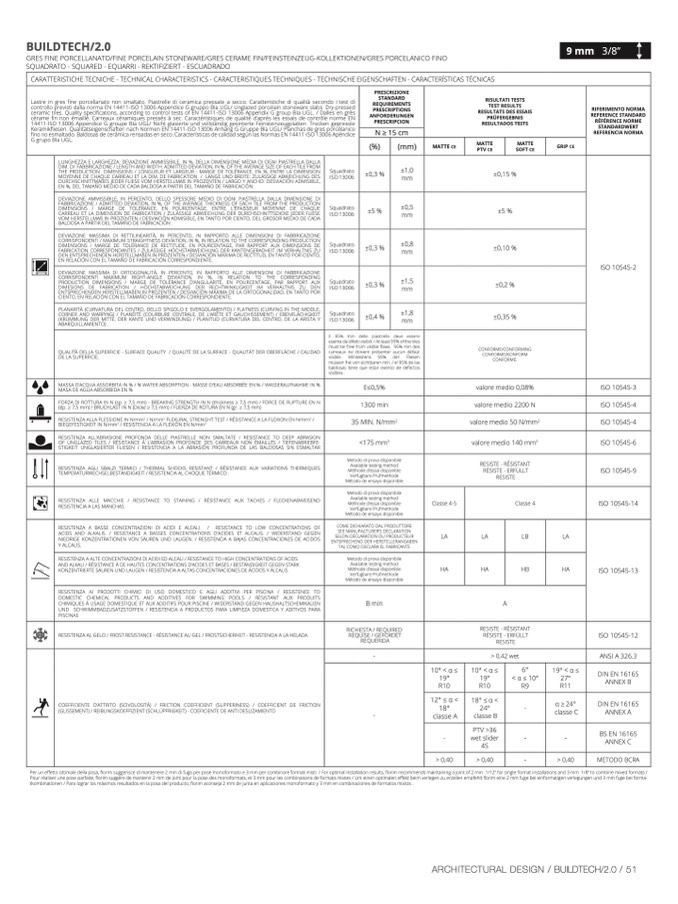 CARATTERISTICHE TECNICHE - TECHNICAL CHARACTERISTICS - CARACTERISTIQUES TECHNIQUES - TECHNISCHE EIGENSCHAFTEN - CARACTERÍSTICAS TÉCNICAS