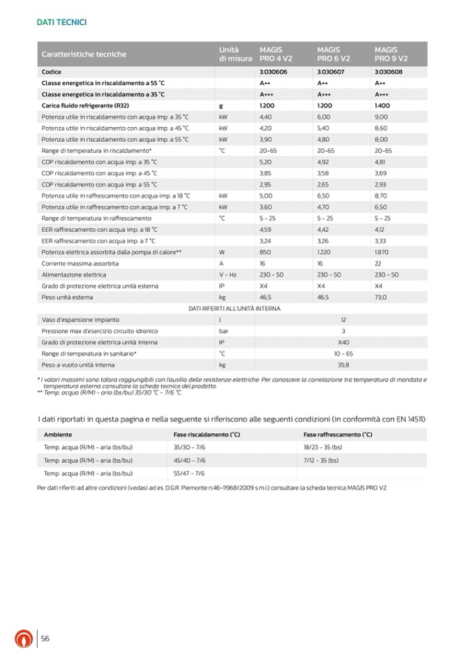 Per dati riferiti ad altre condizioni (vedasi ad es. D.G.R. Piemonte n.46-11968/2009 s.m.i.) consultare la scheda tecnica MAGIS PRO V2.