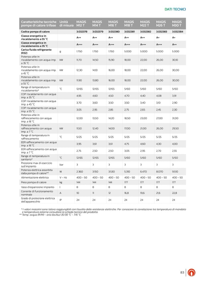 ** Temp. acqua (R/M) - aria (bs/bu) 35/30 °C - 7/6 °C.