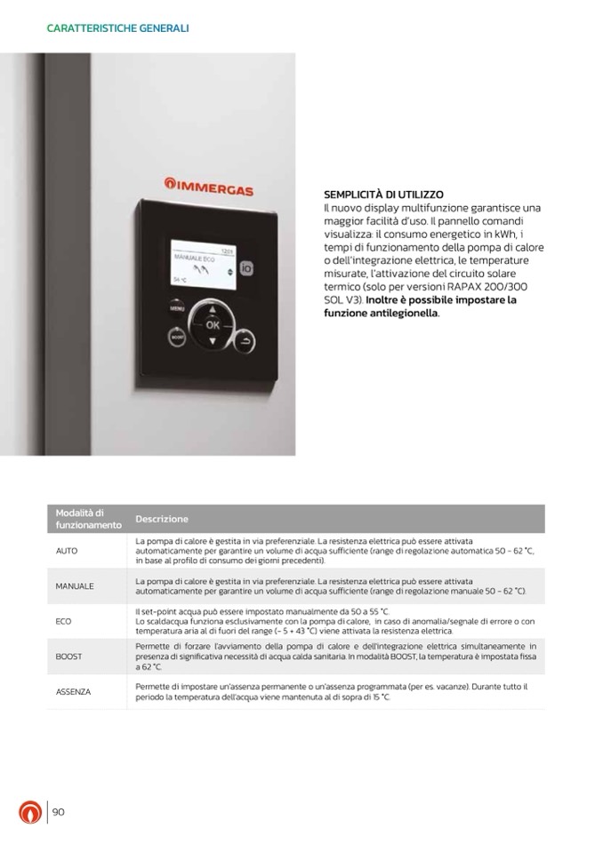 presenza di significativa necessità di acqua calda sanitaria. In modalità BOOST, la temperatura è impostata fissa