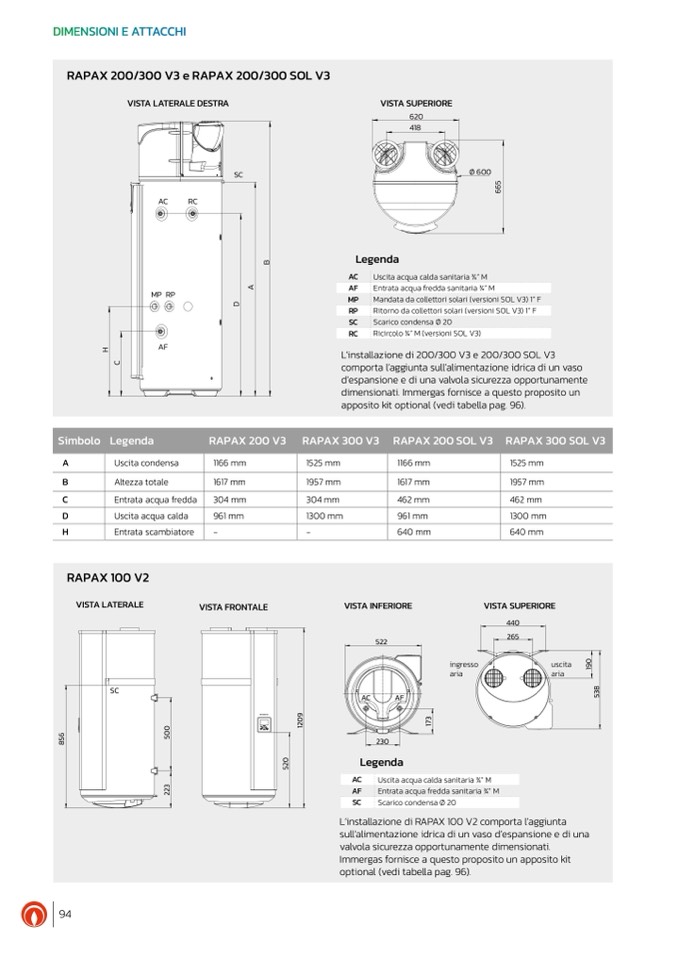 Mandata da collettori solari (versioni SOL V3) 1” F