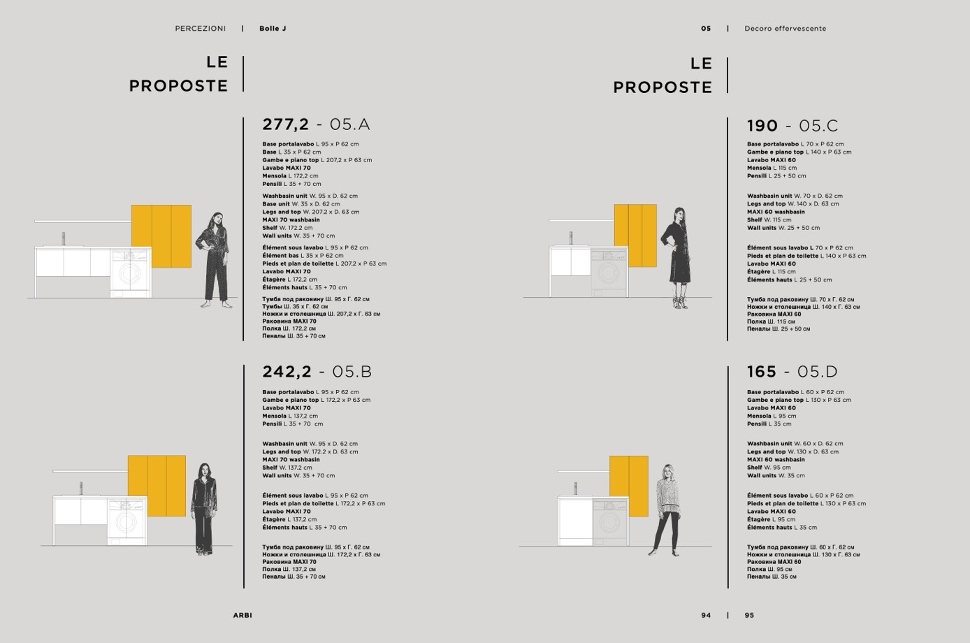 Washbasin unit W. 95 x D. 62 cm