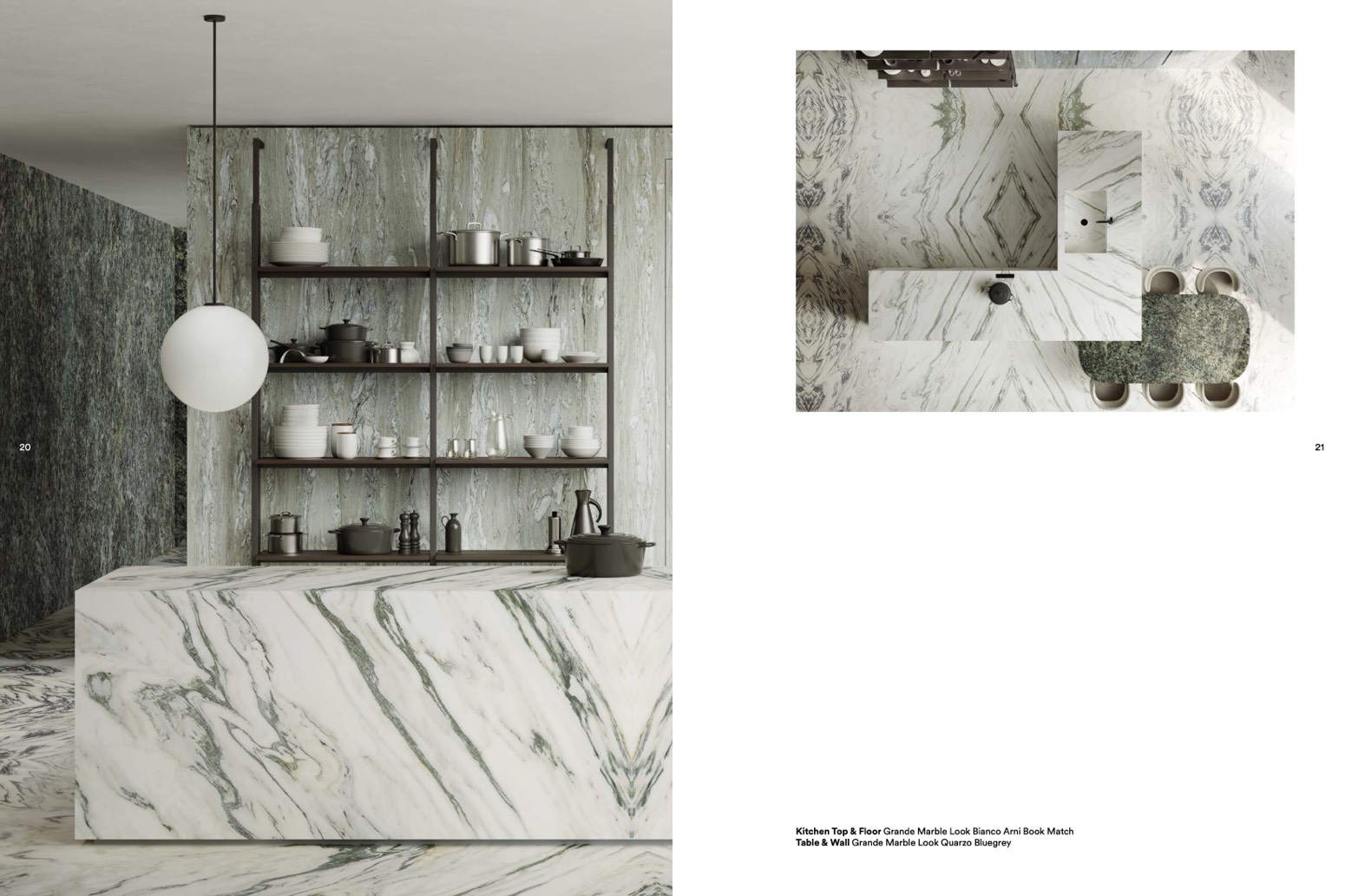 Kitchen Top & Floor Grande Marble Look Bianco Arni Book Match