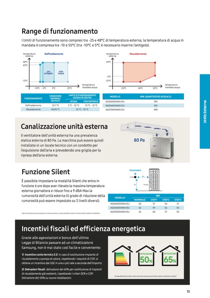 Valore di pressione sonora acquisito in camera anecoica; il valore potrebbe variare in funzione delle condizioni installative.