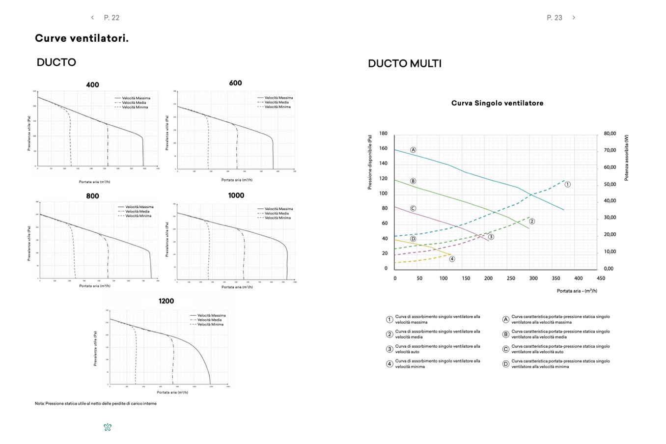 Nota: Pressione statica utile al netto delle perdite di carico interne
