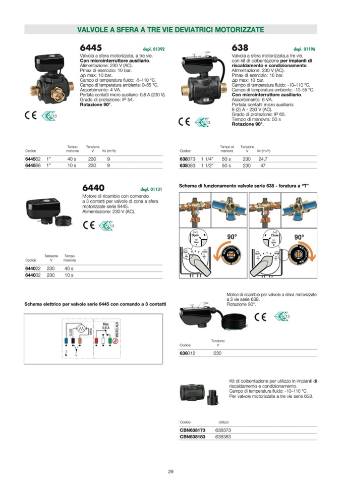 Per valvole motorizzate a tre vie serie 638.