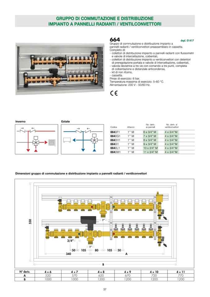 Dimensioni gruppo di commutazione e distribuzione impianto a pannelli radianti / ventilconvettori
