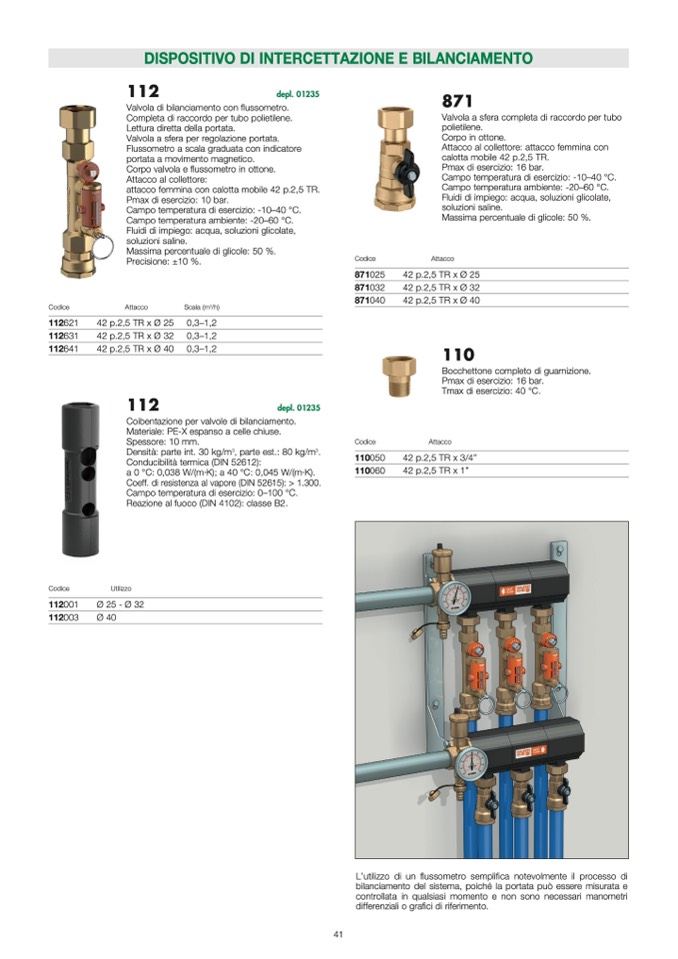 Coibentazione per valvole di bilanciamento.