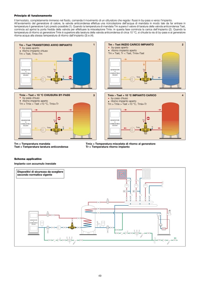 All’avviamento del generatore di calore, la valvola anticondensa effettua una ricircolazione dell’acqua di mandata in modo tale da far entrare in