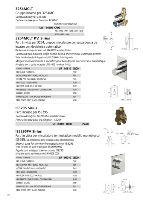 Da abbinare al corpo incasso cod. UN 01600 + codice finitura