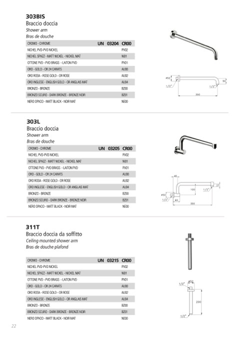 Bras de douche plafond