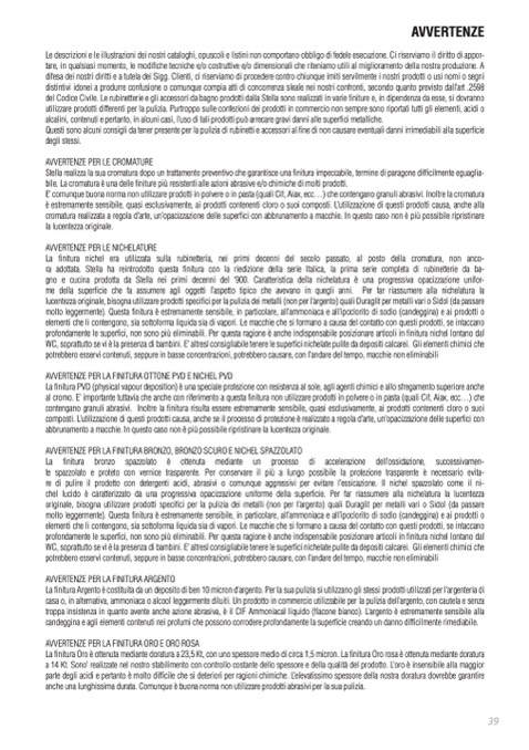 del Codice Civile. Le rubinetterie e gli accessori da bagno prodotti dalla Stella sono realizzati in varie finiture e, in dipendenza da esse, si dovranno
