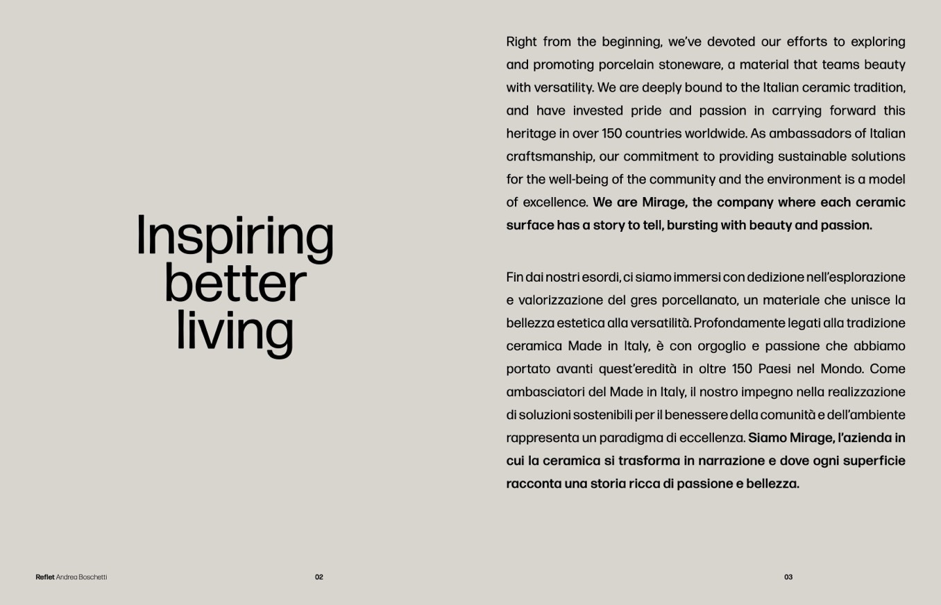 and promoting porcelain stoneware, a material that teams beauty