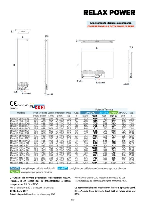 (*) Grazie alle elevate prestazioni dei radiatori RELAX