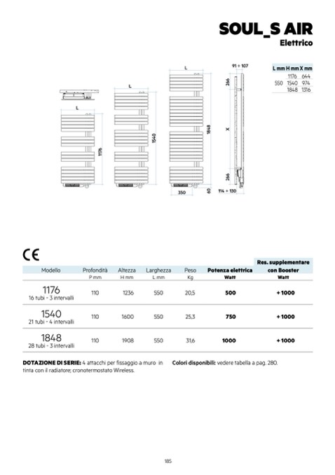 DOTAZIONE DI SERIE: 4 attacchi per fissaggio a muro in
