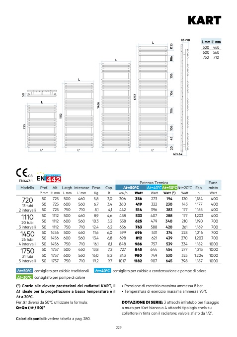(*) Grazie alle elevate prestazioni dei radiatori KART, il