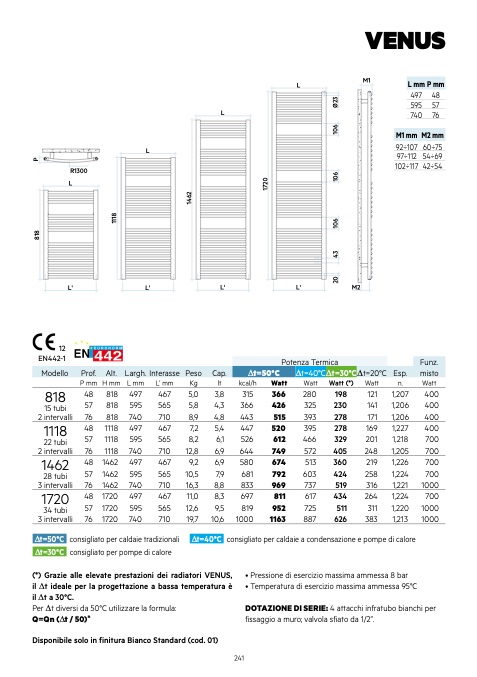 (*) Grazie alle elevate prestazioni dei radiatori VENUS,