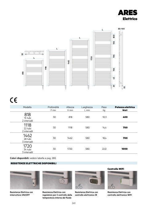 Colori disponibili: vedere tabella a pag. 280.