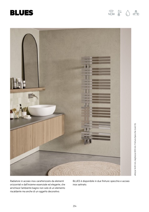 BLUES è disponibile in due finiture: specchio e acciaio