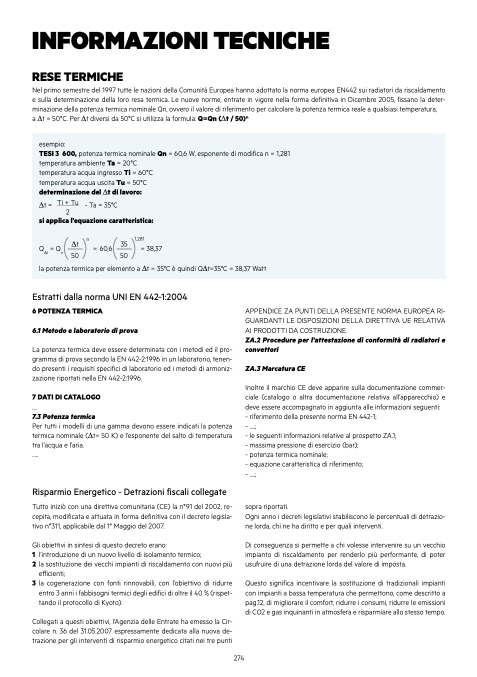 e sulla determinazione della loro resa termica. Le nuove norme, entrate in vigore nella forma definitiva in Dicembre 2005, fissano la deter-