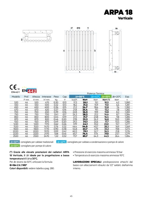 (*) Grazie alle elevate prestazioni dei radiatori ARPA