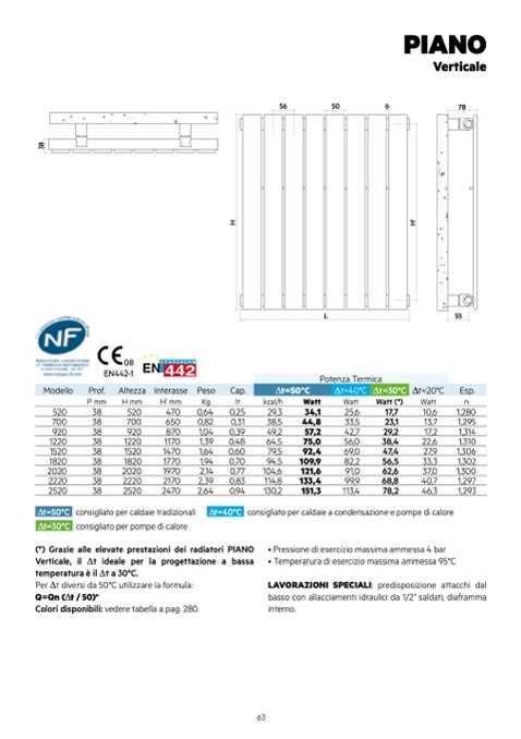 (*) Grazie alle elevate prestazioni dei radiatori PIANO