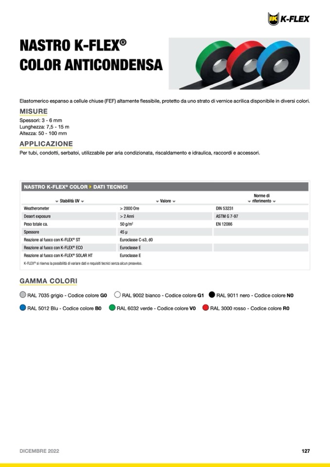 Elastomerico espanso a cellule chiuse (FEF) altamente flessibile, protetto da uno strato di vernice acrilica disponibile in diversi colori.