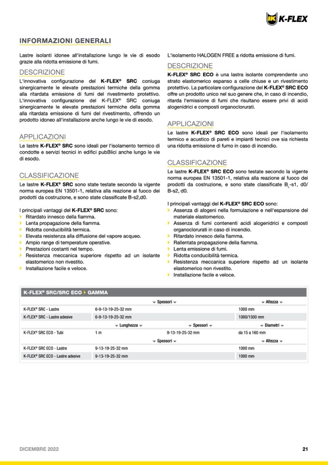 K-FLEX SRC ECO è una lastra isolante comprendente uno