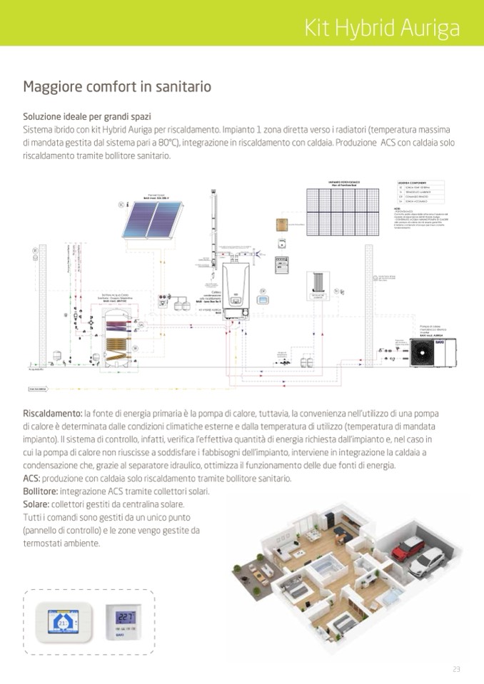 di mandata gestita dal sistema pari a 80°C), integrazione in riscaldamento con caldaia. Produzione ACS con caldaia solo