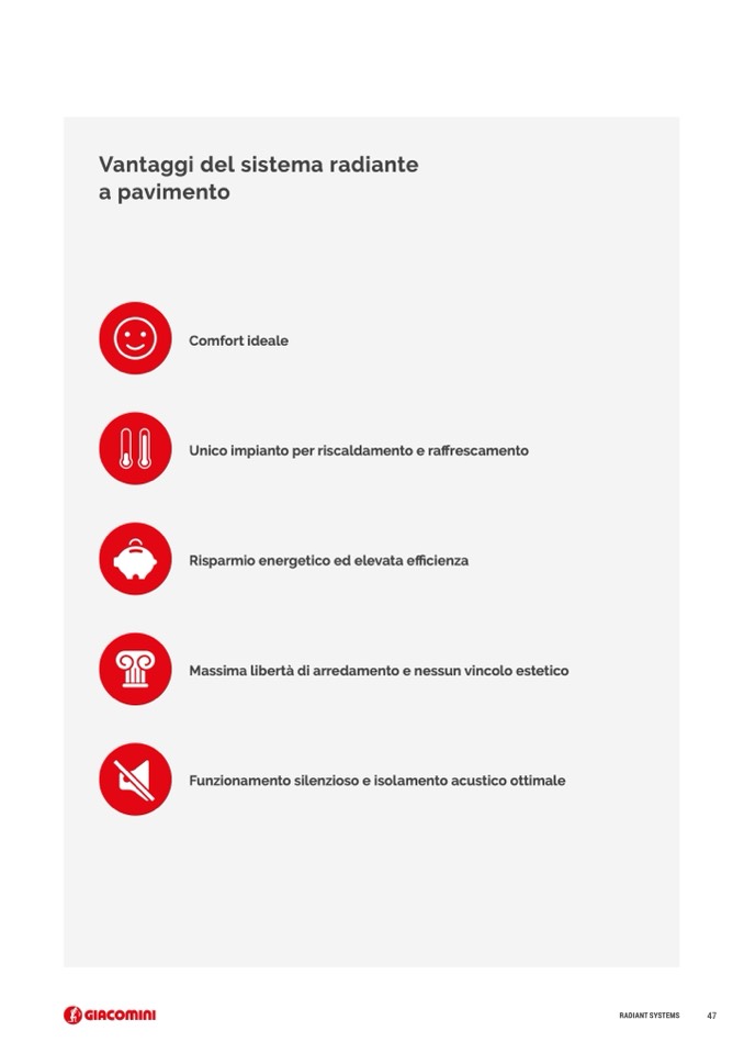 Vantaggi del sistema radiante