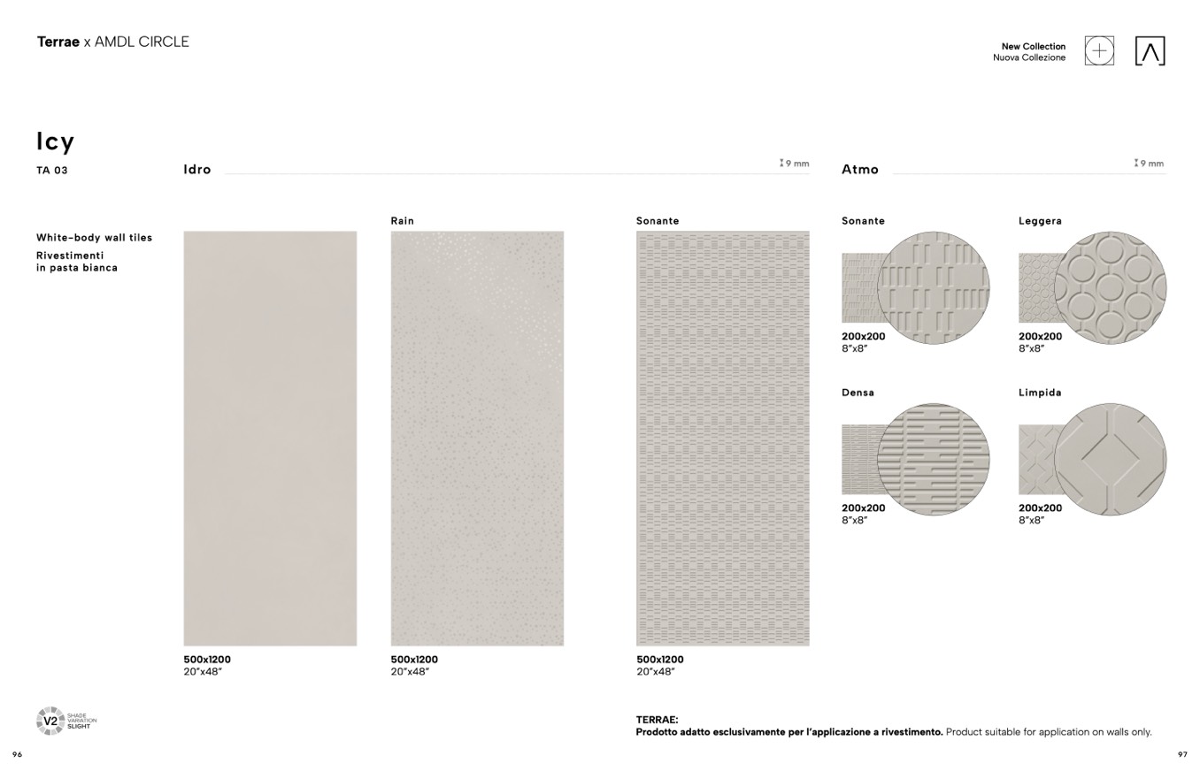 Prodotto adatto esclusivamente per l’applicazione a rivestimento. Product suitable for application on walls only.