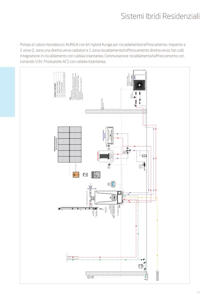 Pompa di calore monoblocco AURIGA con kit Hybrid Auriga per riscaldamento/raffrescamento. Impianto a