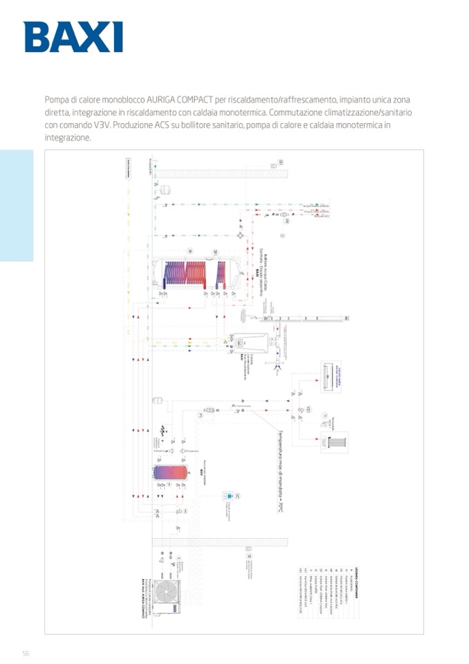 diretta, integrazione in riscaldamento con caldaia monotermica. Commutazione climatizzazione/sanitario