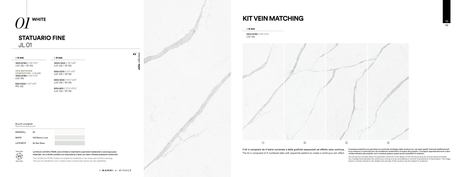 The kit is composed of 4 numbered slabs with sequential patterns to create a continuous vein effect.