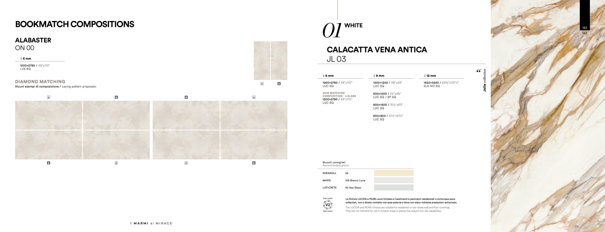 finiture LUCIDA e PEARL sono limitate a rivestimenti e pavimenti residenziali o comunque poco
