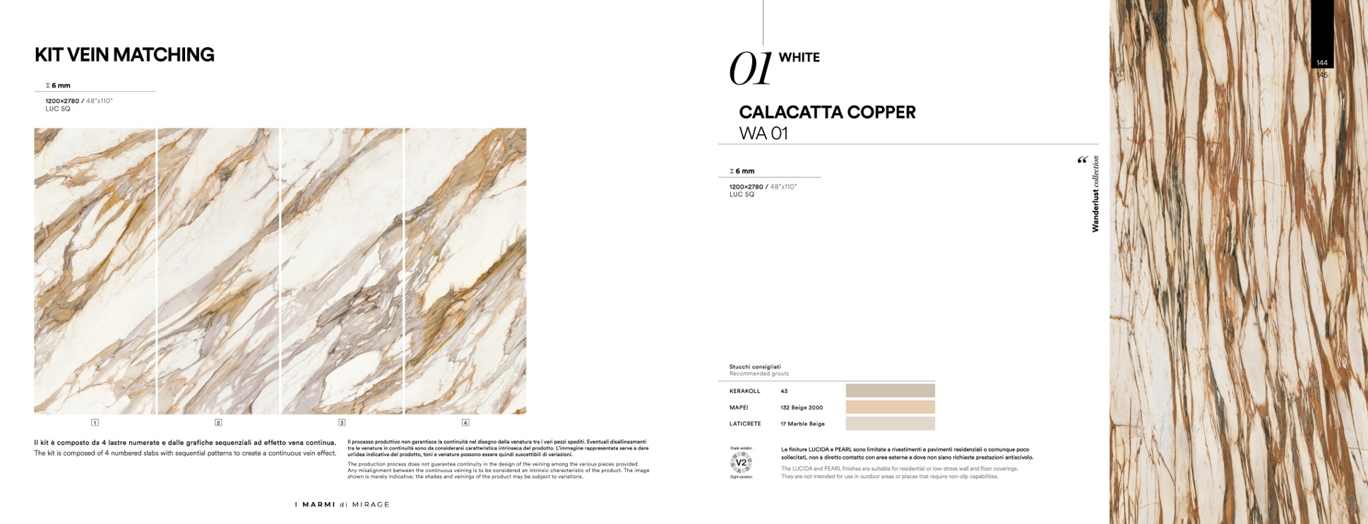 finiture LUCIDA e PEARL sono limitate a rivestimenti e pavimenti residenziali o comunque poco