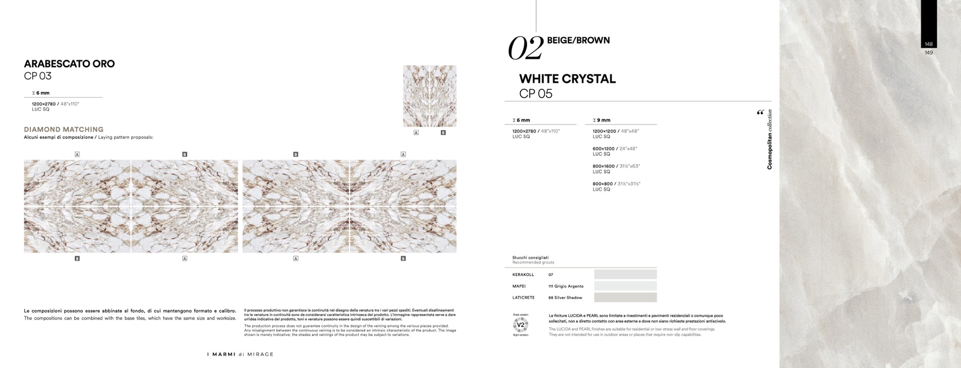 finiture LUCIDA e PEARL sono limitate a rivestimenti e pavimenti residenziali o comunque poco