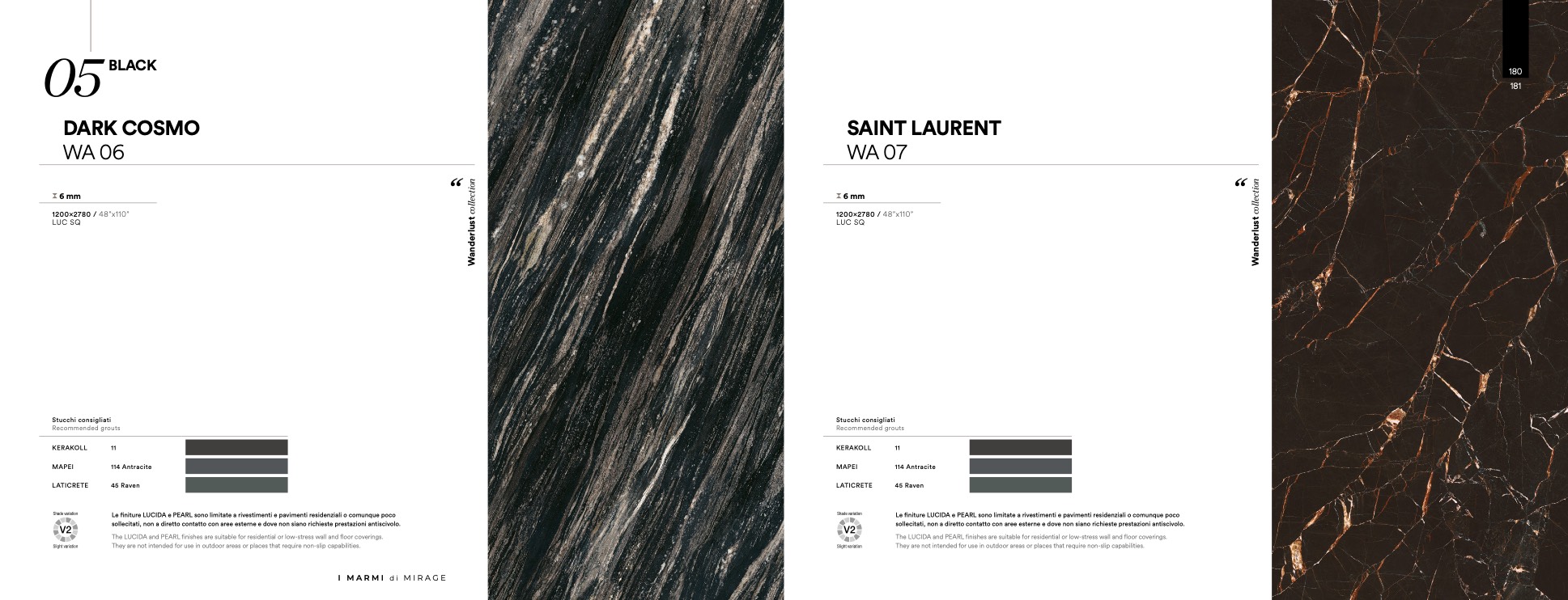 finiture LUCIDA e PEARL sono limitate a rivestimenti e pavimenti residenziali o comunque poco
