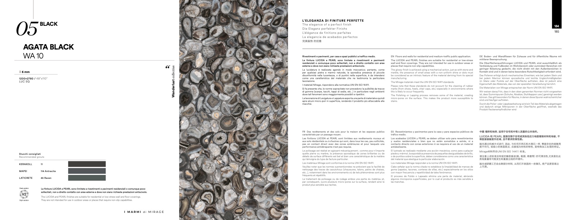Los materiales Mirage responden a la norma UNI EN ISO 14411.