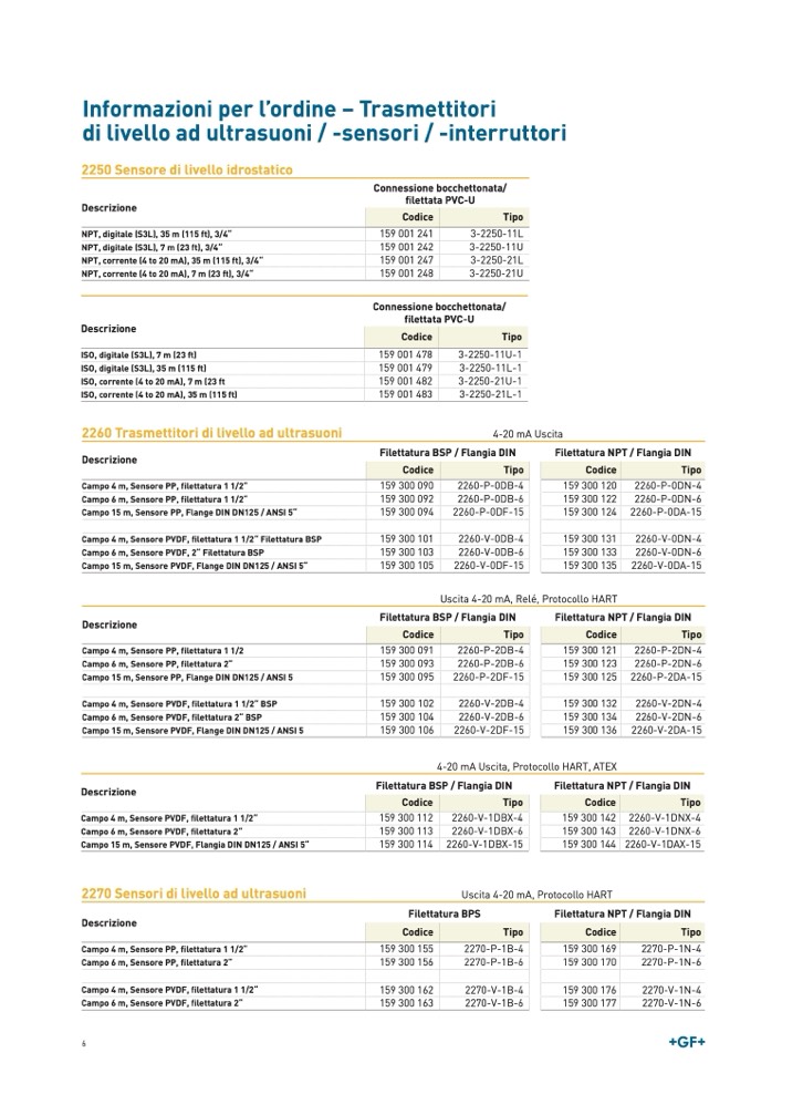 Campo 6 m, Sensore PVDF, 2“ Filettatura BSP