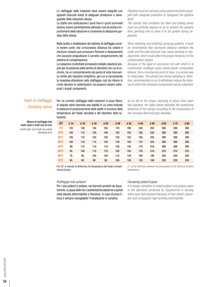 Per un corretto staffaggio delle tubazioni in posa libera,