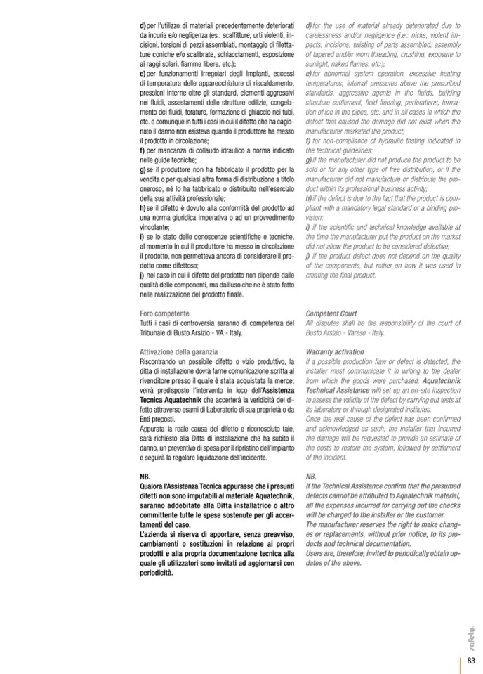 difetti non sono imputabili al materiale Aquatechnik,