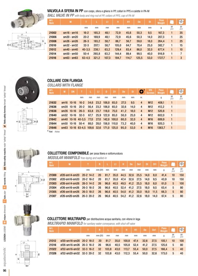 VALVOLA A SFERA IN PP con corpo, sfera e ghiera in PP, collari in PPS e calotte in PA-M