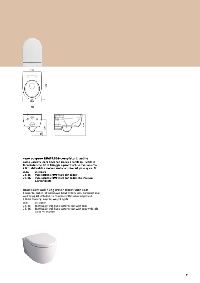 6 litri. abbinabile a modulo sanitario Universal. peso kg ca. 22