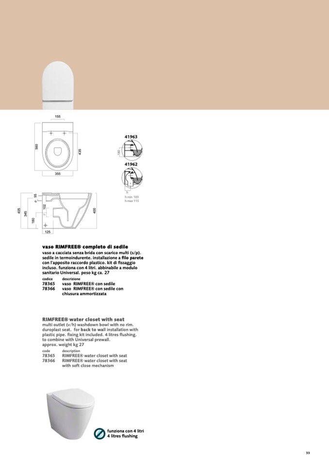 plastic pipe. fixing kit included. 4 litres flushing.