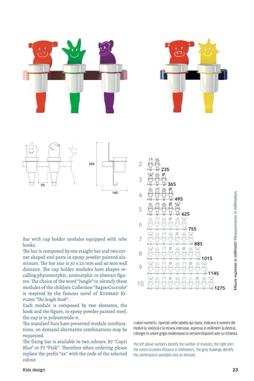 moduli (a sinistra) e la misura interasse, espressa in millimetri (a destra).