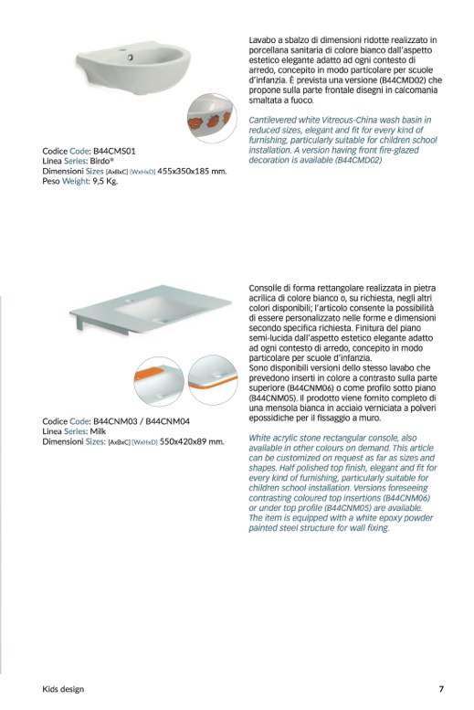Lavabo a sbalzo di dimensioni ridotte realizzato in