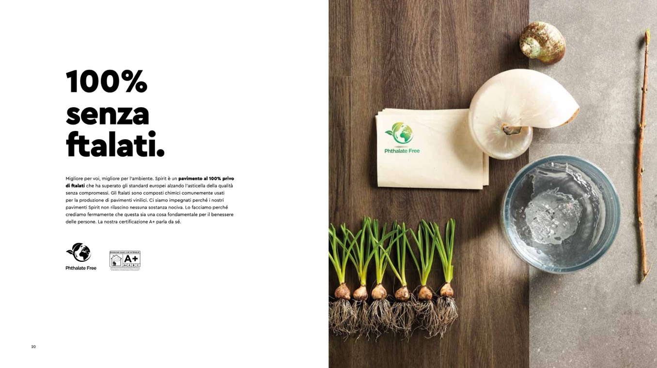 Migliore per voi, migliore per l’ambiente. Spirit è un pavimento al 100% privo