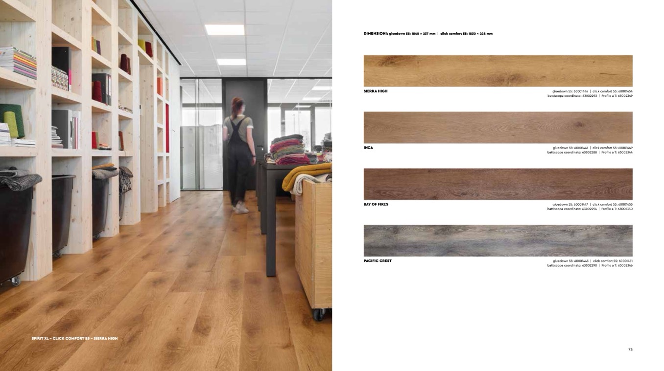 DIMENSIONI: gluedown 55: 1840 x 237 mm | click comfort 55: 1830 x 228 mm